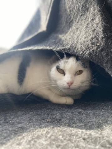 MILKI jest małą indywidualistką z wielkim charakterem. Ma za sobą leczenie związane z nowotworem płaskonabłonkowym i jest po amputacji uszka. To kotka-obserwator o pięknych, żółtych oczach, która woli przyglądać się światu z bezpiecznej odległości, niż szukać pieszczot czy przytulania. Najbardziej czuje się w swojej klatce lub w przytulnym, małym legowisku. Nie jest kotką przytulanką – szanuje swoją przestrzeń i jasno komunikuje granice. Za to uwielbia smaczki i drobne nagrody, którymi chętnie się pocieszy. Idealny dom dla Milki to spokojne miejsce, gdzie może być sobą i obserwować wszystko dookoła. To kotka dla kogoś, kto rozumie, że miłość czasem oznacza po prostu cierpliwe towarzyszenie i szanowanie indywidualności.